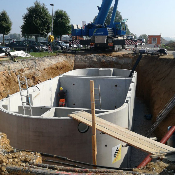 Für die Straßenmeisterei Wels wurde auf der B138 zur Versickerung des Niederschlagwassers eine Gewässerschutzanlage errichtet. Da aus Platzgründen kein offenes Bodenfilterbecken errichtet werden konnte, erfolgt die Vorreinigung und Retention über ein unterirdisches, befahrbares Betonfertigteilbecken im Fahrbahnbereich. Nach erfolgter Vorreinigung über den technischen Filter SW-AQUAfilt-F3, wird das Wasser über einen Sickerbrunnen in den Untergrund versickert.