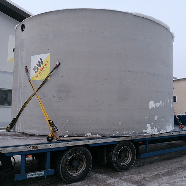Für das Projekt in Stockenboi wurden Behälter als Anlageteile einer Kläranlage geliefert und versetzt. Im Pufferbecken wird der unterschiedliche Tages-Abwasserzufluss aufgefangen und nur in der Beschickungsphase dem SBR-Reaktor zugeführt. Aus dem elliptischen Retentionsbecken erfolgt der gedrosselte Ablauf in den Vorfluter.