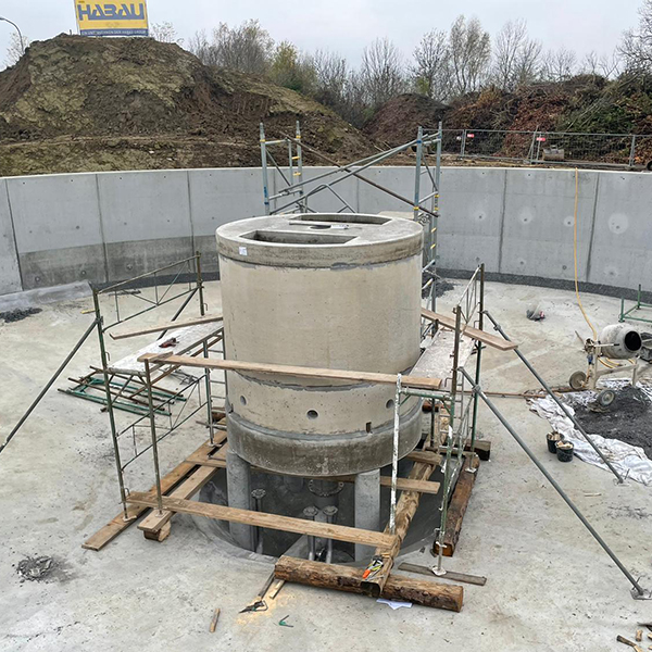 Das Projekt sieht die Errichtung eines Mittelturms beim Nachklärbecken der Kläranlage Eggenburg-Röschitz vor. Der Mittelturm ist eine Kombination von Ortbetonstützen, worauf ein aus Fertigteilen hergestellter Schachtteil mit einer Wandstärke von 19 cm in 2-teiliger Ausführung mit einer Flachabdeckung, der mit der Ortbetonstütze vergossen wird.