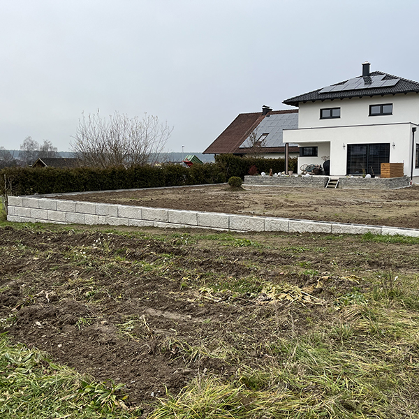 Bei dem Privathaus in Großgerharts wurde das SW-Stützwandsystem zur Eingrenzung des Grundstücks verwendet.