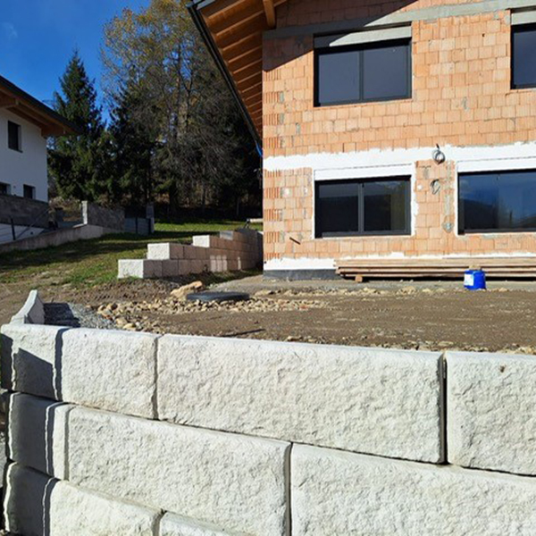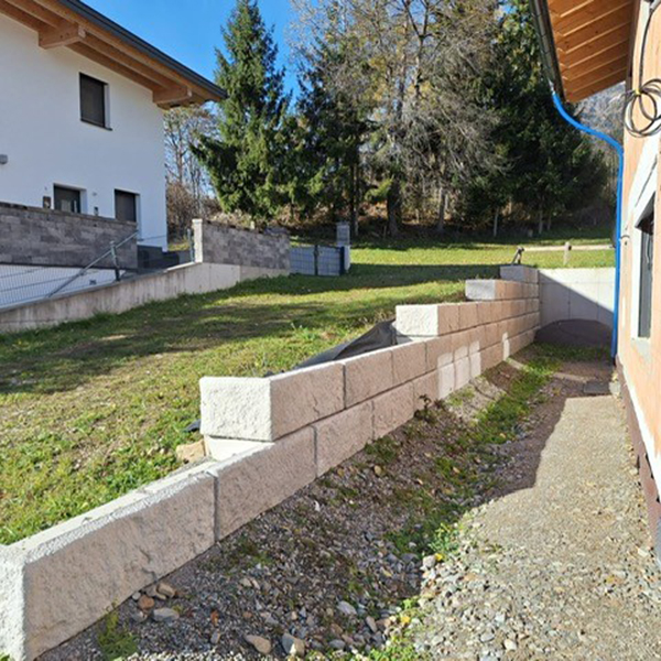 Durch das SW-Stützwandsystem konnte eine stabile Hangsicherung neben dem Haus sowie ein Niveauausgleich vor dem Haus geschaffen werden.