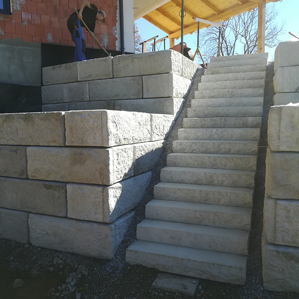 Die Firma Kiesenhofer konnte mit Hilfe unseres SW-Stützwandsystems den Hang ebnen und so mehr Platz für den Auftraggeber gewinnen. Angepasst an die Situation vor Ort, wurde hier ein schöner Außenradius umgesetzt.