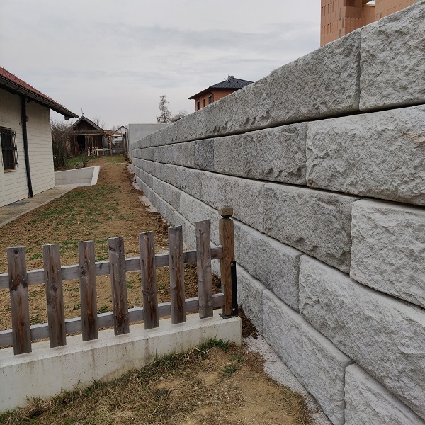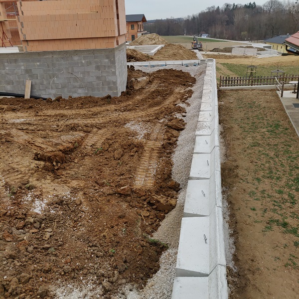 Auf der Suche nach einem Hangsicherungssystem, das schnell umgesetzt werden kann, Sicherheit bietet und optisch anspricht, entschied sich der Kunde bei seinem Neubauprojekt für unser Stützwandsystem.