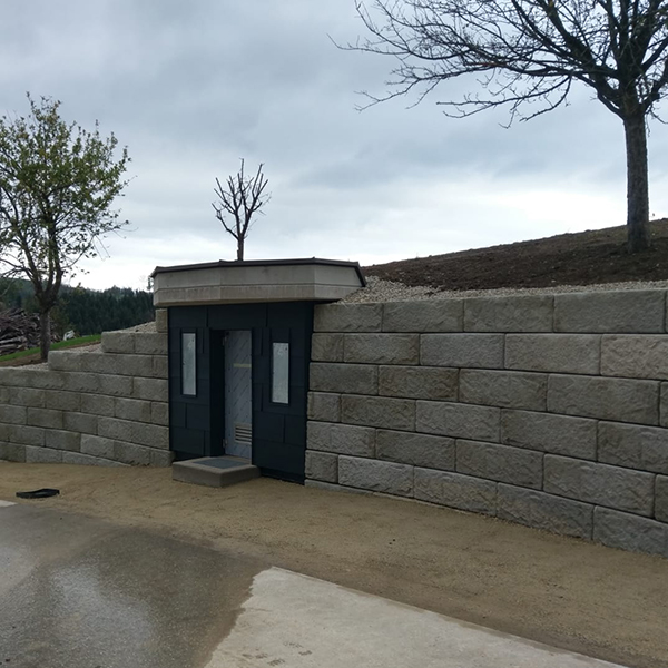 Das SW-Stützwandsystem wurde für die Einhausung eines Trinkwasserspeichers gewählt.